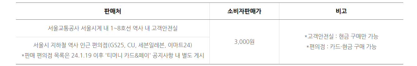 ※ 티머니 유통가맹처(편의점, 롯데리아, 스타벅스 등)에서는 사용이 불가합니다.