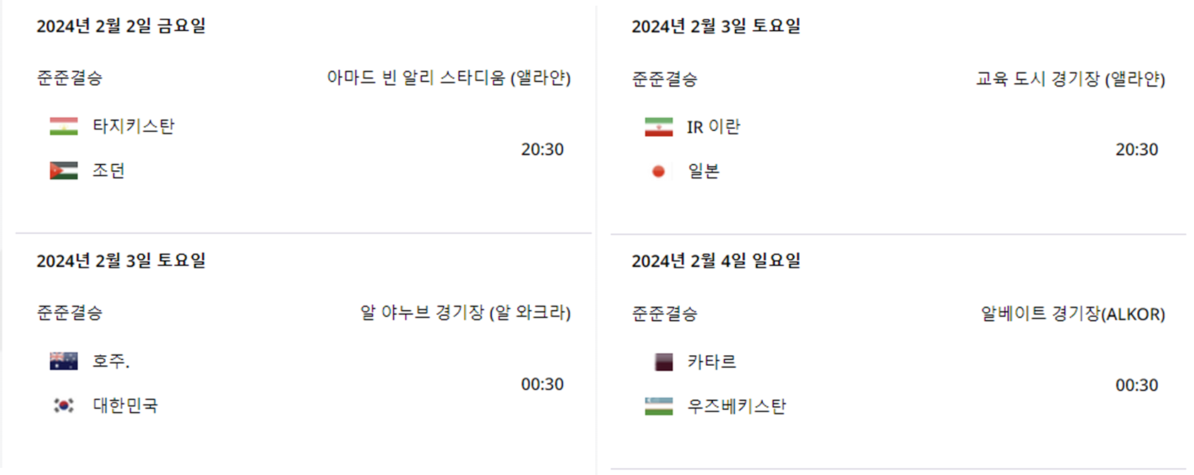 2023 AFC 아시안컵 8강전 일정